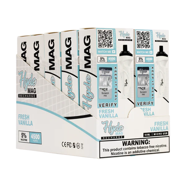 Hyde Fresh Vanilla Mag offers pure, clean vanilla flavor in disposable vape form. Features 10mL pre-filled capacity, 4500+ puffs, 50mg nicotine, rechargeable battery, and Micro USB charging. Perfect for adult vanilla flavor enthusiasts seeking premium satisfaction.
