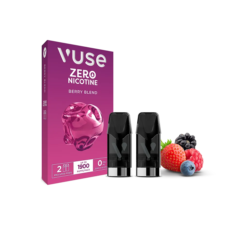 Vuse Berry Blend pods contain 0mg nicotine. Specifically, complete nicotine-free formula exists. Moreover, flavorful satisfaction results.
