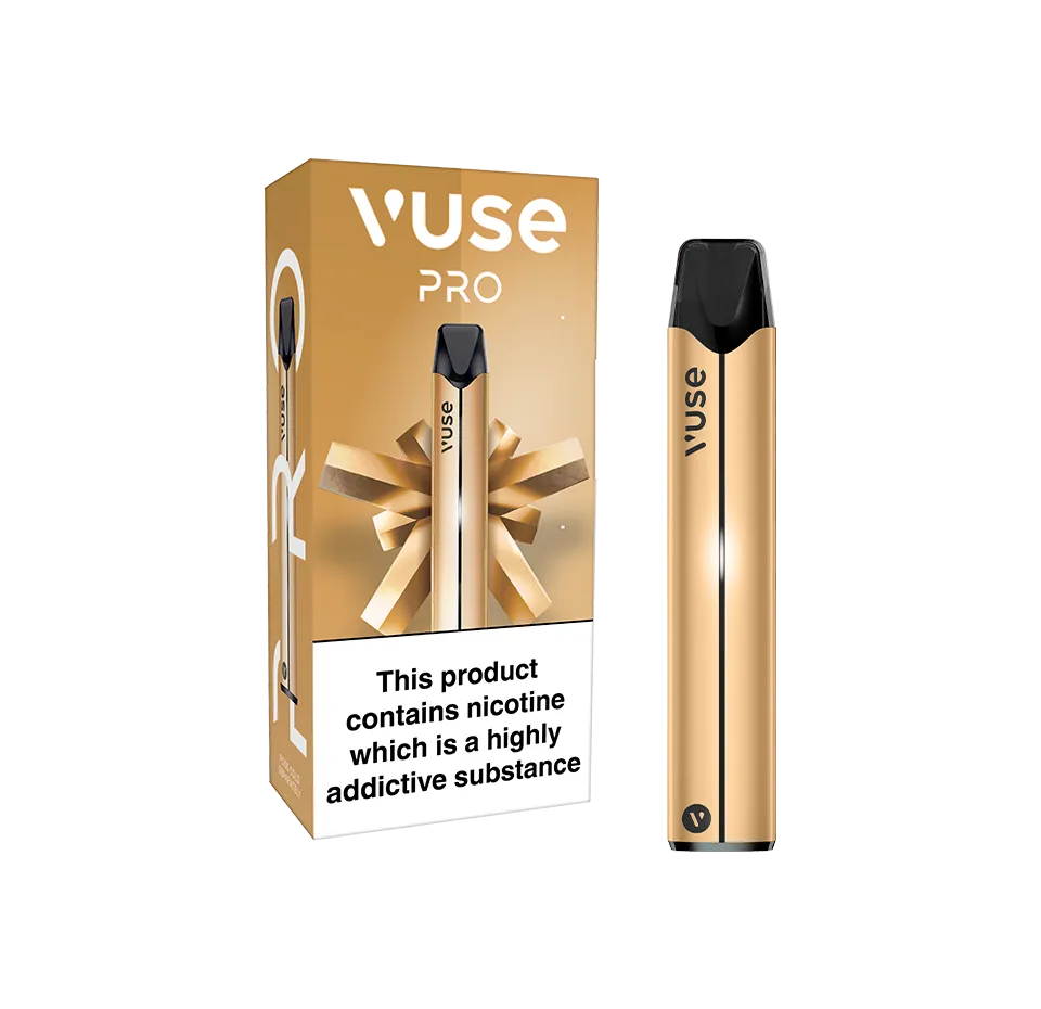 Vuse Pro: Upgraded device kit with fast charging, splash-proof design, and ePod 2 compatibility. Features LED battery indicators and modern colors. Adult-only.